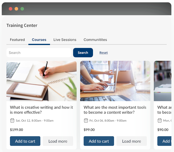 Monetize your content and accept payments from your learners directly to your account. Embed your branded catalog on your marketing website and make your learner’s journey seamless.